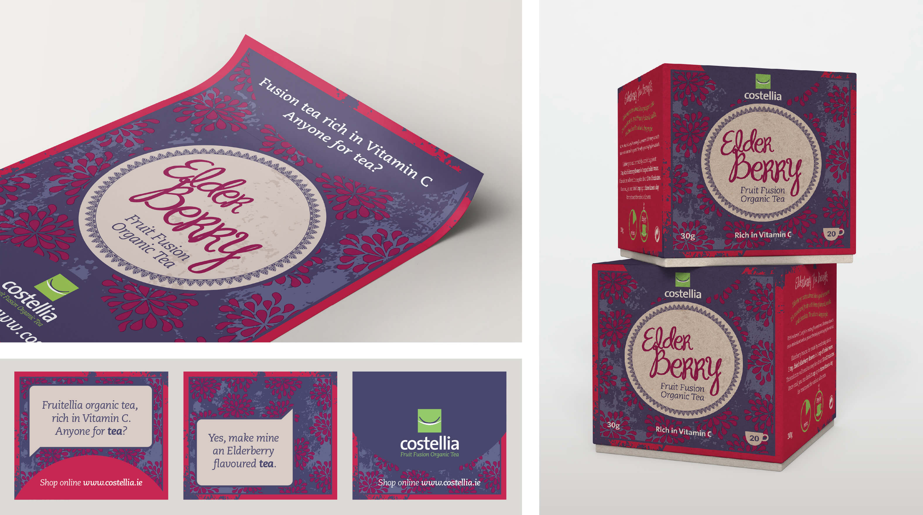 A development of a package design product of organic tea with dried Irish fruits and berries with a new brand name Costellia which was created.
